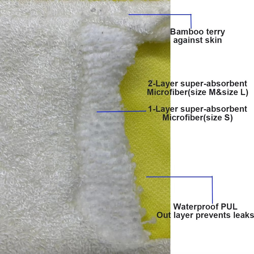 The outer layer is constructed from PUL waterproof material, effectively preventing leaks while maintaining comfort and flexibility.